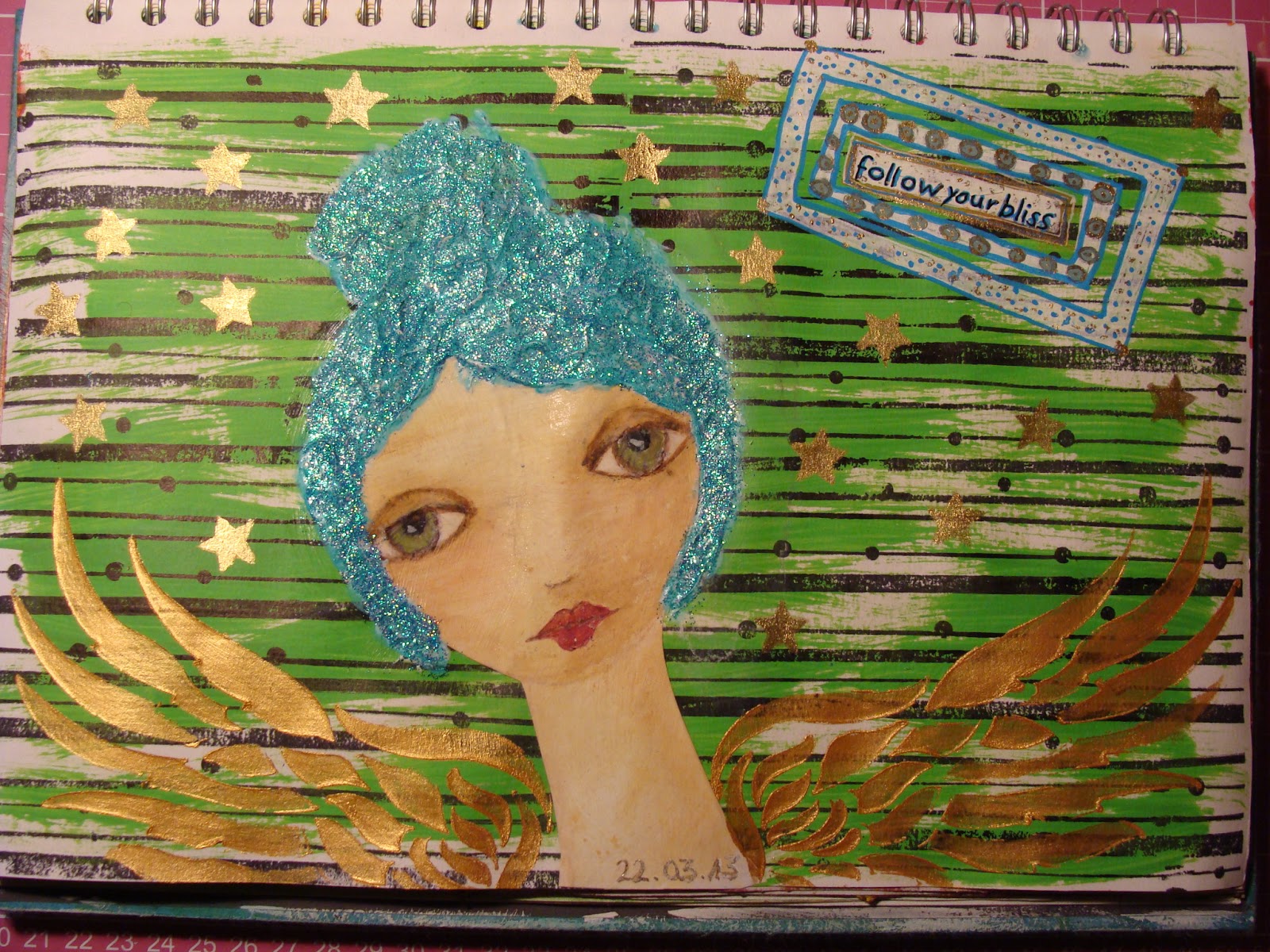 …because of a bad cold! A journal with already prepared backgrounds and pens kept me doodling most of the day :o)